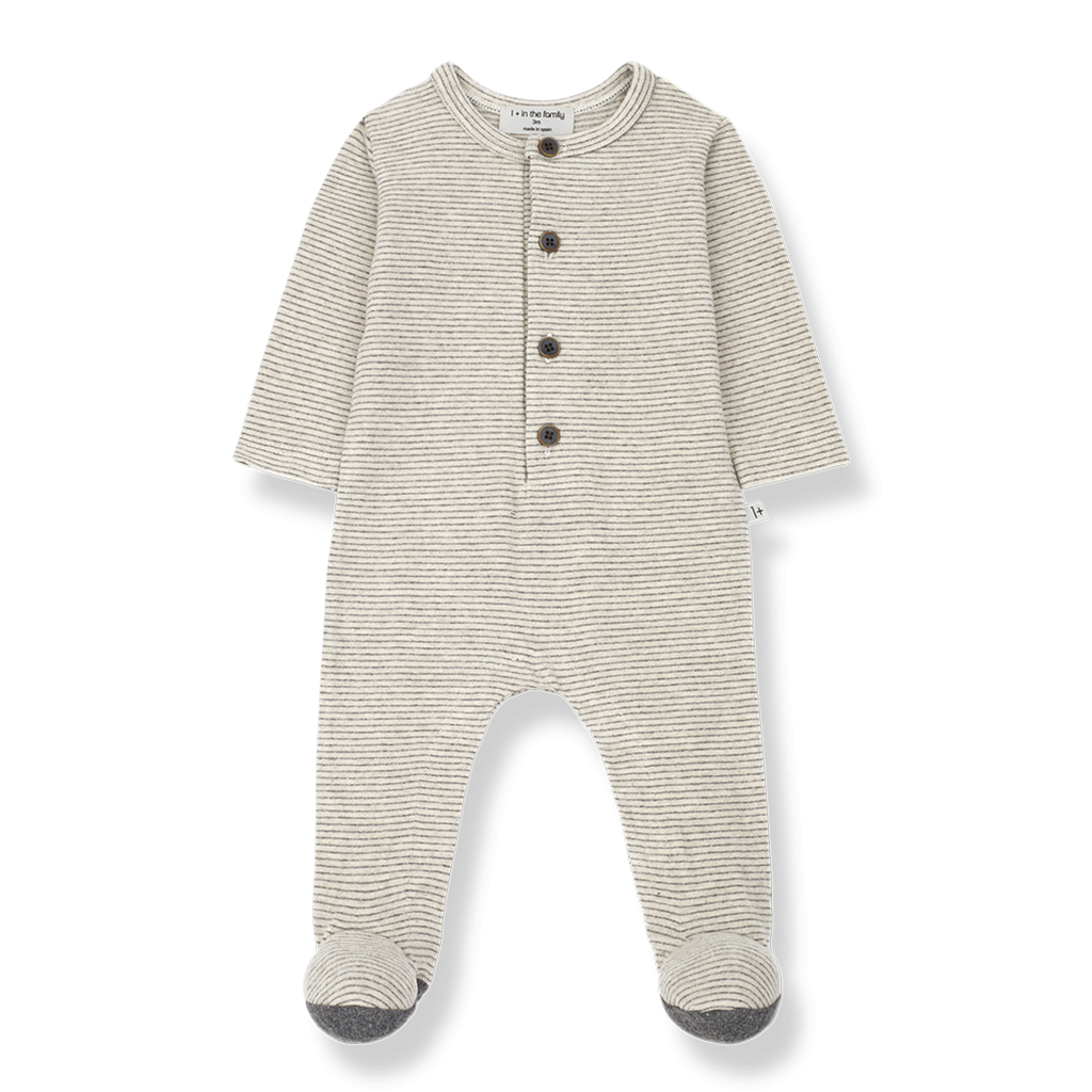 Baby Sleeper Jumpsuit with Feet - Oatmeal Stripes