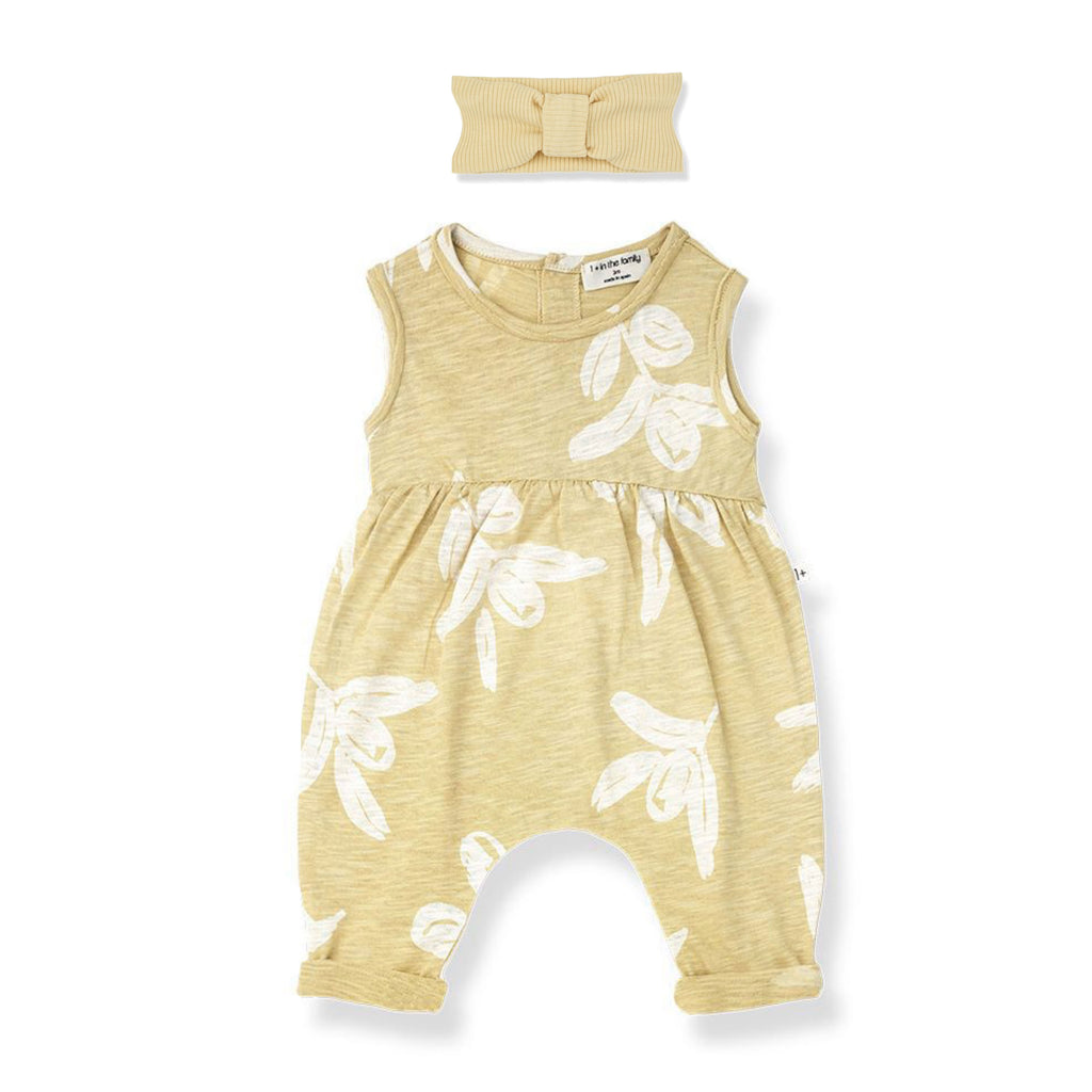 Our favourite colour of the season! Beautiful bright set of baby girl summer jumper with matching headband in a super soft slub jersey by 1+ in the Family. Little buttons on the back for easy change. Made inĀ Spain with natural cotton Sizes 3 and 6 months
