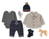 Bundle up your little snowflake with the Cozy in Winter Baby Gift Box! This delightful set features a long-sleeve onesie and comfy plaid pants perfect for winter adventures. Add in soft socks, a fuzzy fleece outerwear top, and the cutest knitted hat with a bouncy pompom for extra cozy fun. Plus, keep those tiny fingers busy with a crinkle teether and a charming wooden horsey that’s ready to trot into playtime. It’s everything you need for a perfect new parents gift this chilly season!