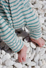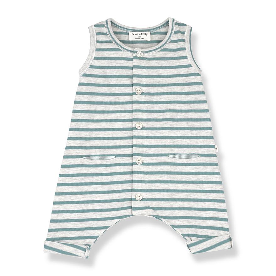 This soft sleeveless cotton romper with mint stripes by 1+ in the Family is the perfect comfy summer outfit. Buttons on the front for easy change. Made with natural cotton in Spain. Sizes 1, 3 and 6 months