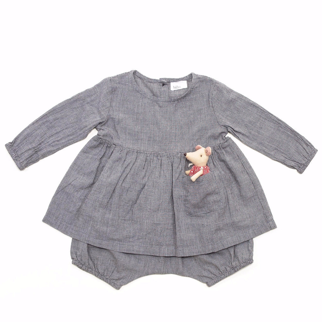 Adorable baby dress and matching bloomers set by Buho Barcelona in mini Pied-de-poule. 100% Cotton
