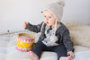 These adorable knitted leggings are made with a wonderful blend of cashmere and wool with lots of room for baby comfort.