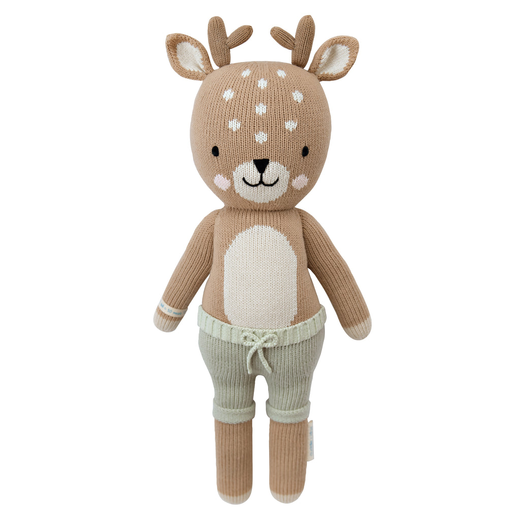 CUDDLE + KIND'sĀ adorable stuffies are hand knitted in Peru using sustainable, fair trade practices. Safe and non-toxic, the plush toy is made with premium cotton yarn and is stuffed with hypoallergenic polyfill. The purchase of each doll provides 10 meals to children in need around the world.Ā