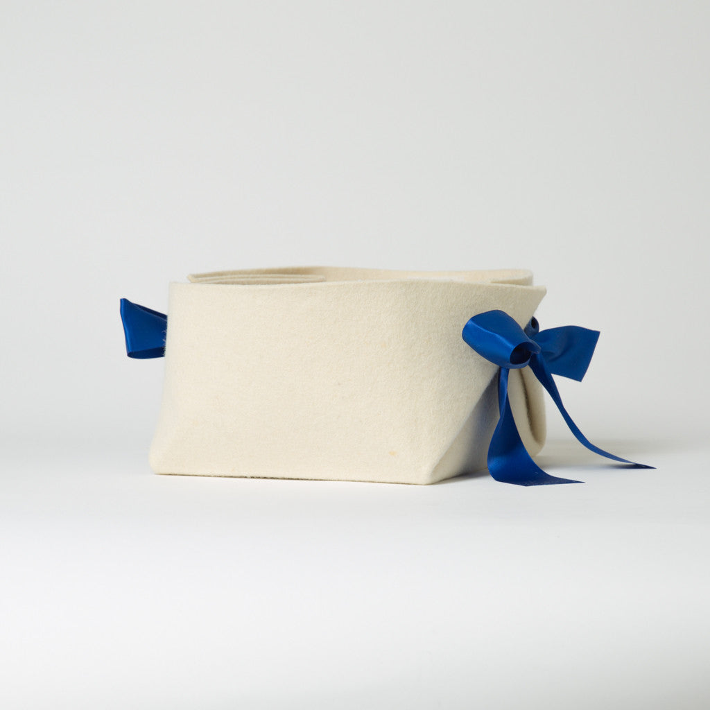 Our Handmade baskets are felted natural wool blend and manufactured in Canada.