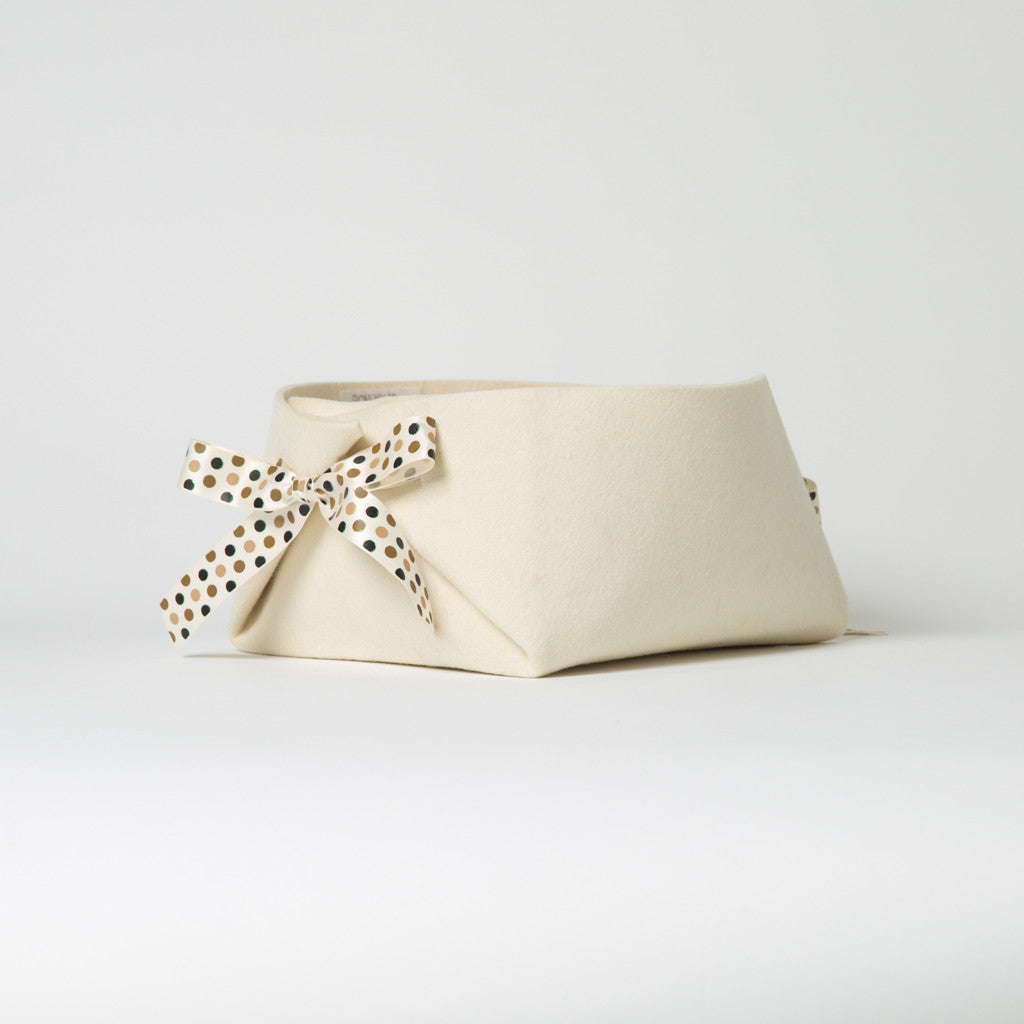 Our Handmade baskets are felted natural wool blend and manufactured in Canada.Â