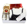 Welcome your little star with our Bright Stars Baby Girl Gift Box! This playful and adorable set includes a soft onesie and corduroy romper from Spanish Designer Boboli, gold soft sole shoes, a wooden teether, a star-printed swaddle, and a book for baby's first library. Perfect for your trendy baby. Presented in our luxury gift box.