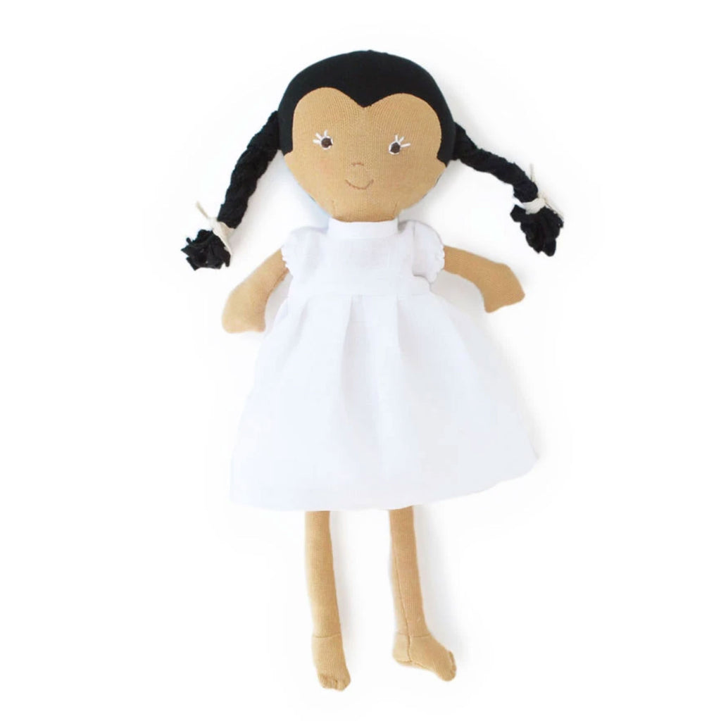 From the new collection of lovely designer Hazel Village, Celia soft doll with white linen dress will be your baby's best friend. Celia likes to spend time in her tree house, where she has a beautiful tea set and soft cushions for her friends to sit upon. Sometimes the birds of the forest fly through the window, and she gives them tea and biscuit crumbs.