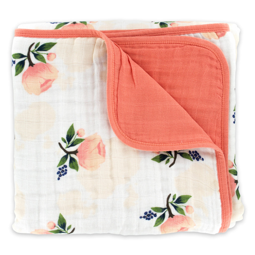 Nursery Cotton Muslin Quilted Blanket "Watercolour Rose"