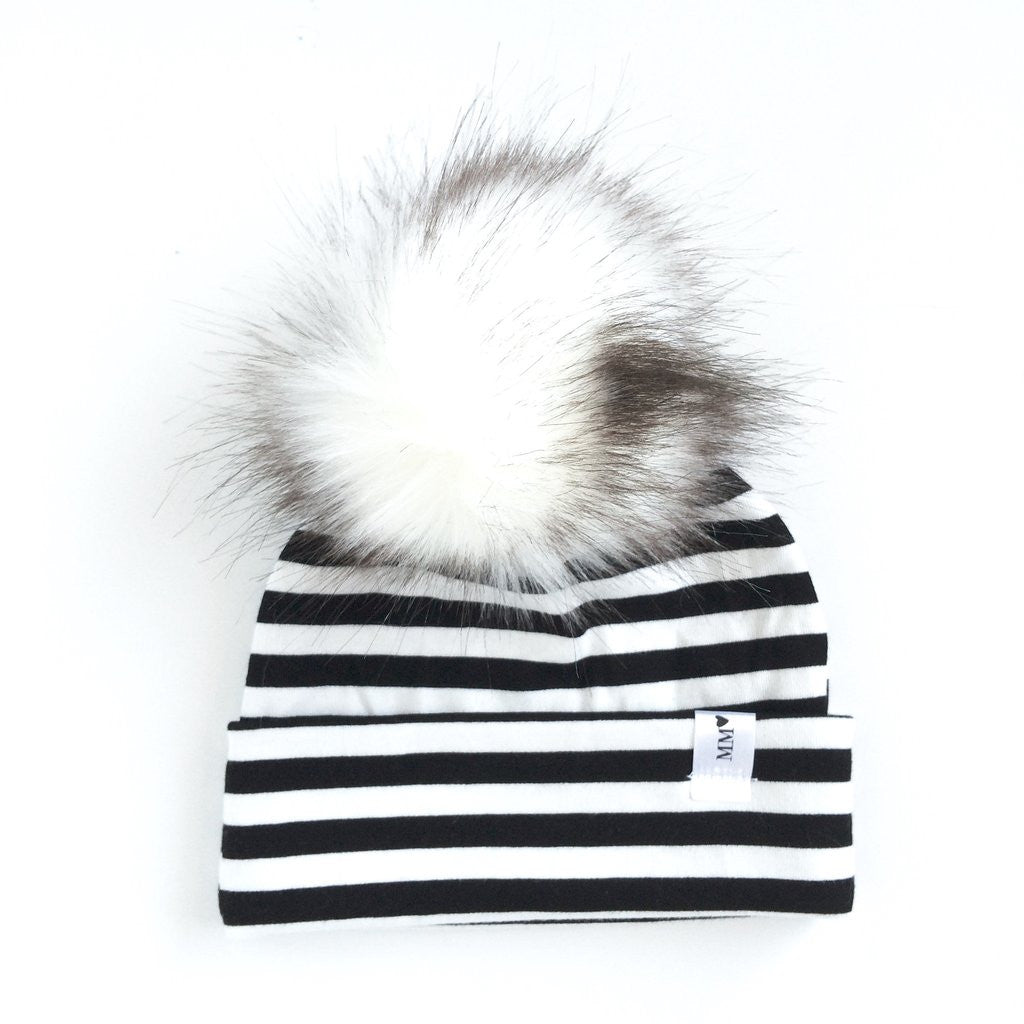 For the super cool babes! Organic jersey cotton and faux fur pom pom slouchy beanie. Made in Canada