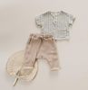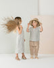 From their newest collection, this adorable cotton woven tee in storm stripe colour and trousers in sand set by Rylee and Cru is perfect for the Spring and Summer months! Soft and lush cotton with a cool vibe.Â