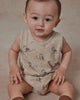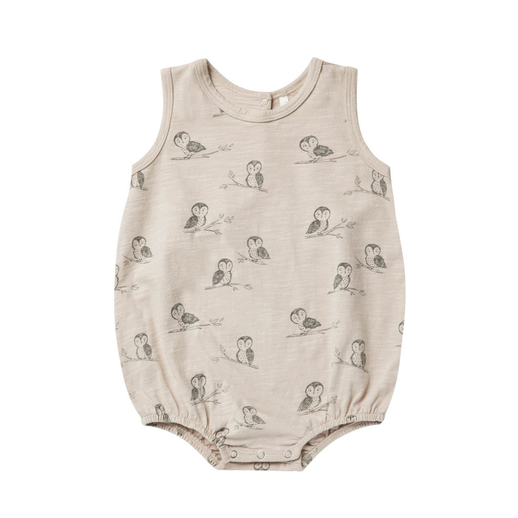 Super soft bubble romper by Rylee and Cru with adorable little owls print in slub jersey cotton.Â