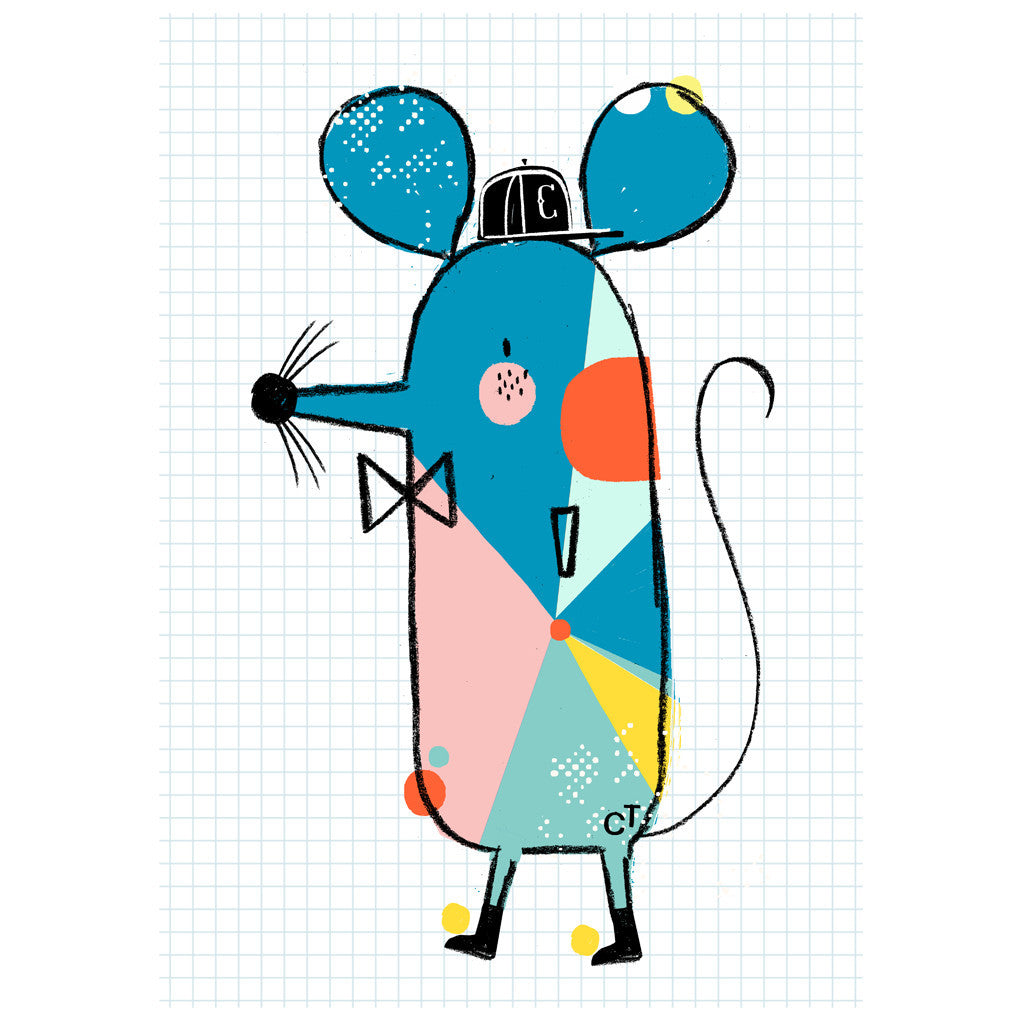 Colorful Mouse art hand screen printed in England on quality white paper.