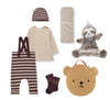 This adorable baby gift set includes a super soft striped romper, matching hat, cozy warm blanket, and cute little socks by One More in the Family. Plus, the lovable Baby Sloth Crinkle Cuddler adds extra snuggly fun. All beautifully packaged in the charming Little Bear Suitcase by Meri Meri—perfect for welcoming a new little cub with style and warmth!