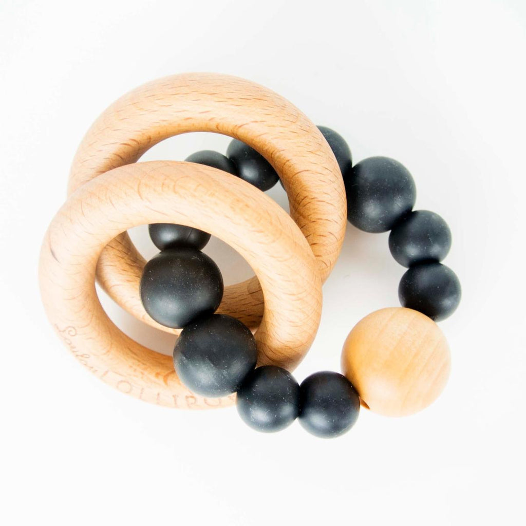 This beautiful handmade teether is made with silicone beads and beech wood. Made in Canada