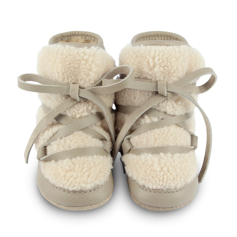 Perfect for those cold days! These adorable lined baby boots made of faux sheep fur and leather laces will keep those little toes warm all winter long.Ā These boots are true to size.Ā