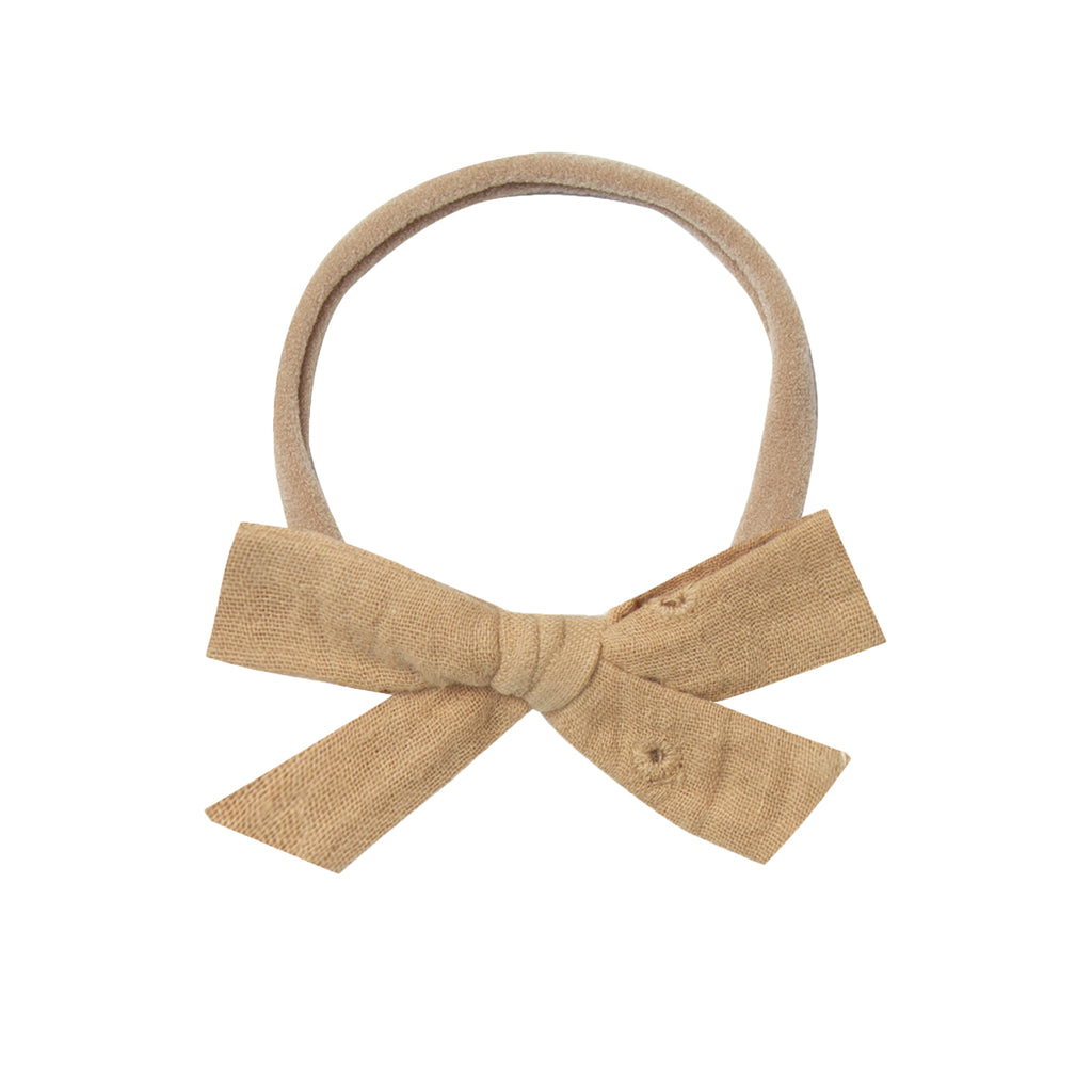 Rylee and Cru super soft elastic headband with an adorable knot bow in soft honey colour. Perfect addition for babies and toddlers wardrobe. Great addition to your BYOB (Build Your Own Basket) or to gift on its own.