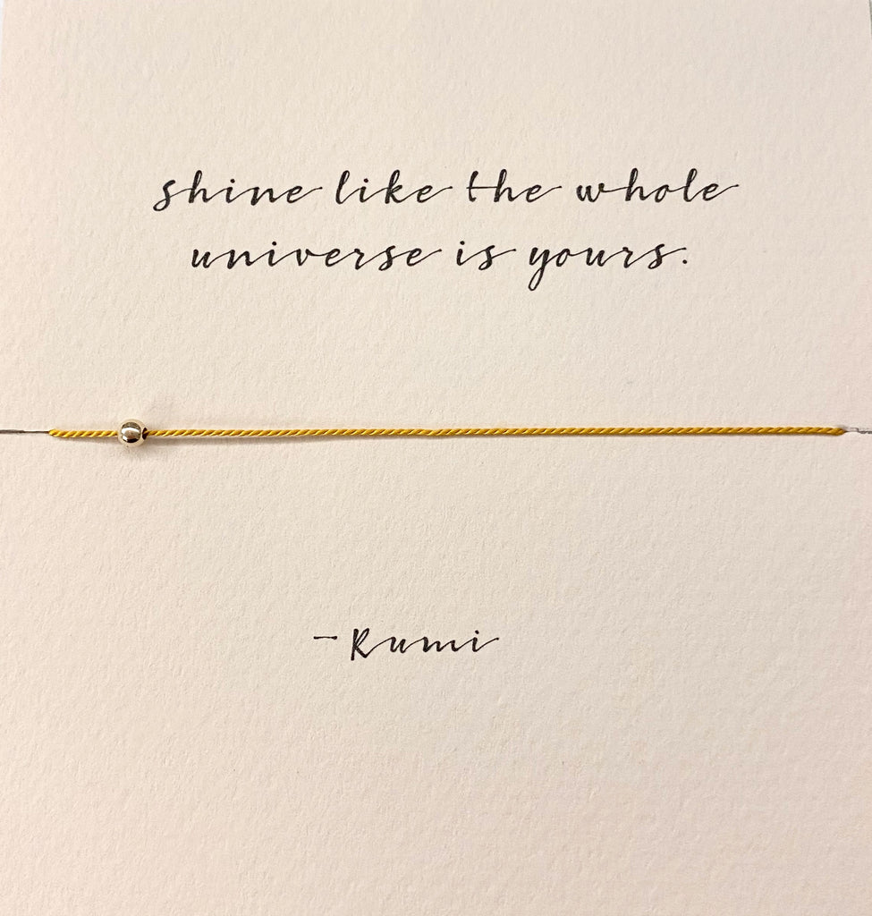 Beautiful handmade bracelet on yellow silk with 14k gold bead.