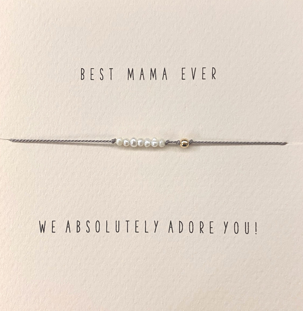 Beautiful handmade bracelet with freshwater pearls on grey silk with 14k gold filled bead.