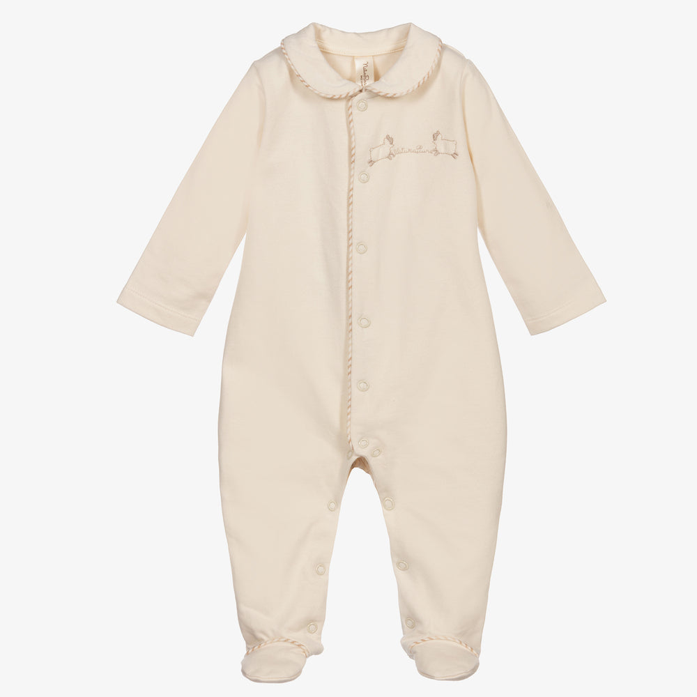 Soft and velvety organic cotton delicately embroidered with Naturapura's little sheep. Snaps on the front for easy changing.