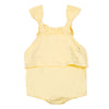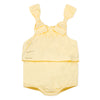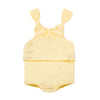 Unique baby romper in lovely yellow with sequence details and beautiful bows by our new designer Lili Gaufrette. Made of 100% cotton. Presented in Bonjour Baby Baskets luxury gift box. Great addition to our BYOB (Build Your Own Basket) Designed in FranceÂ