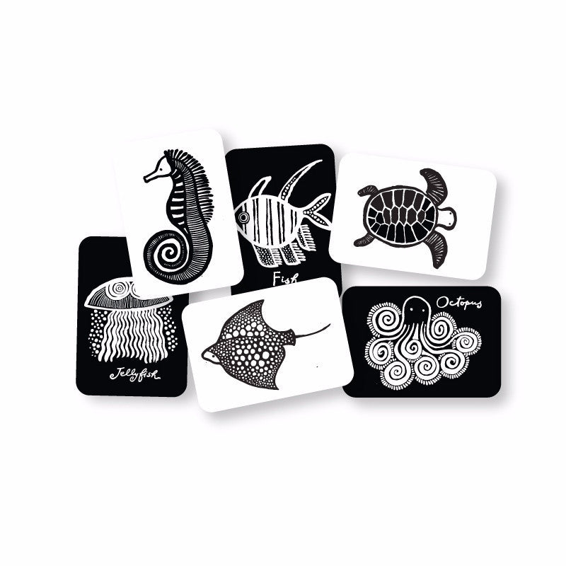 Wee Gallery art cards are created from bold, whimsical, hand-painted originals that cater to a baby's visual strengths. The black and white images and their repeating patterns captivate little ones. Place them in the crib to transform it into a wee gallery or use them as flash cards for older children.